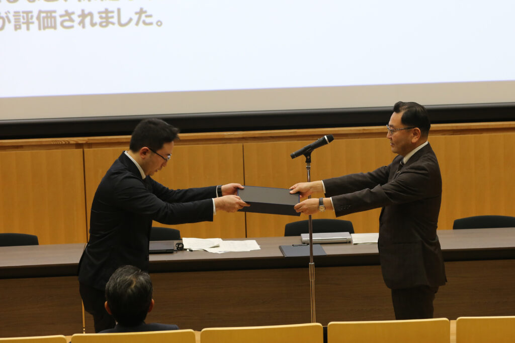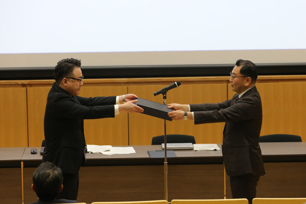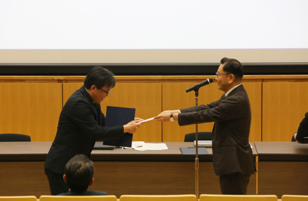 その後、受賞者には石井研究科長より賞状と記念品が授与されました。